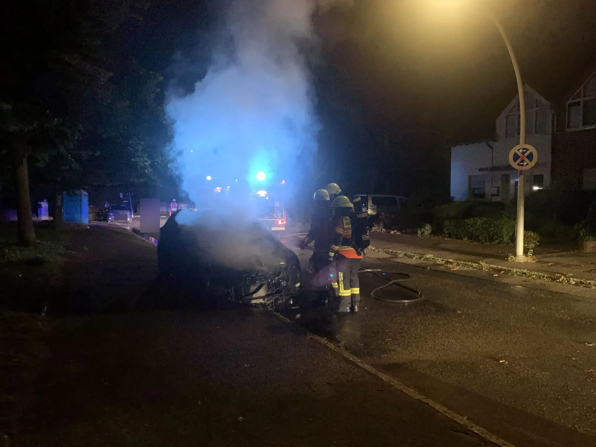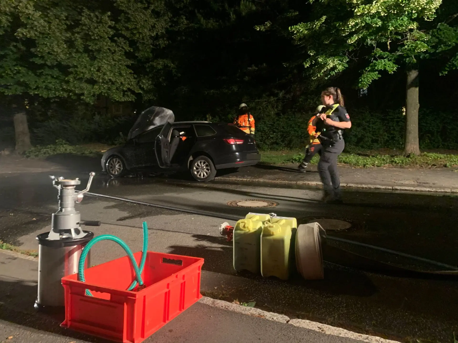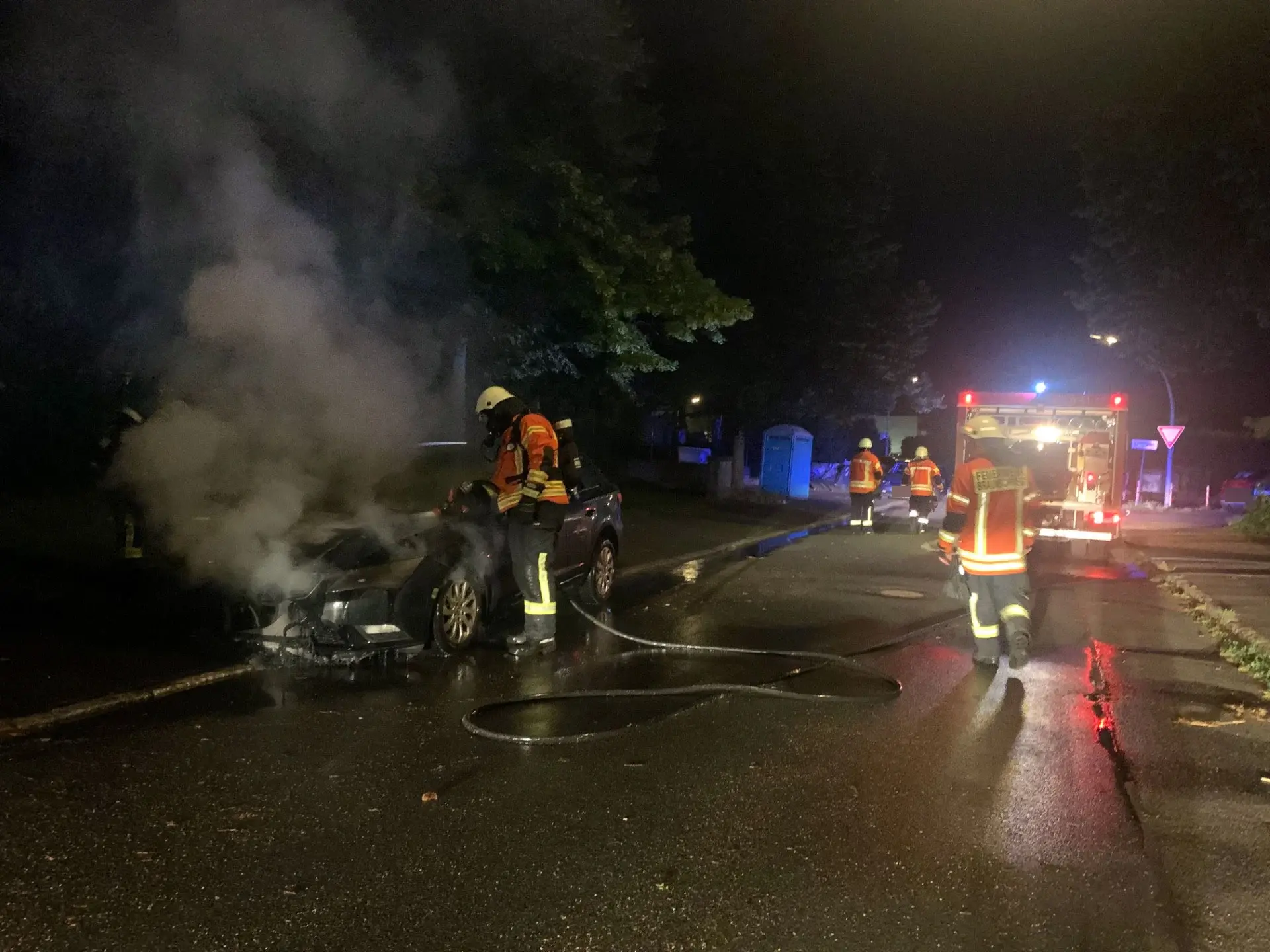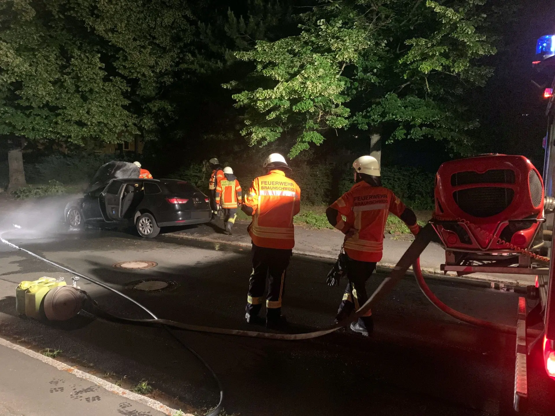 Am späten Abend des 24.06.2023 wurde die Ortsfeuerwehr Ölper zu einem weiteren Einsatz alarmiert. Diesmal handelte es sich um einen Pkw-Brand im Westlichen Ringgebiet von Braunschweig. Beim Eintreffen der Feuerwehrkräfte hatte das Feuer bereits auf das gesamte Fahrzeug übergegriffen. Sofort begann man mit den Löscharbeiten. Unter schwerem Atemschutz und mittels Schnellangriff wurde versucht, den Brand einzudämmen.
