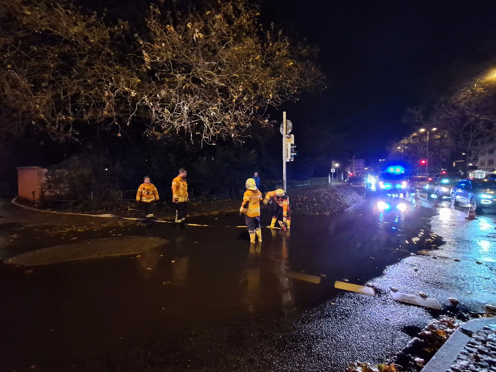 Die Einsatzkräfte reagierten umgehend und setzten eine Tauchpumpe sowie eine Tragkraftspritze ein, um das Wasser von der Fahrbahn zu entfernen und die Straße wieder passierbar zu machen. Während des Einsatzes wurden mehrere verstopfte Gullys identifiziert und gesäubert. Ein nicht freizuspülender Gully wurde mittels Feuerwehrabsperrband für den benachrichtigten Kanalmeister markiert.