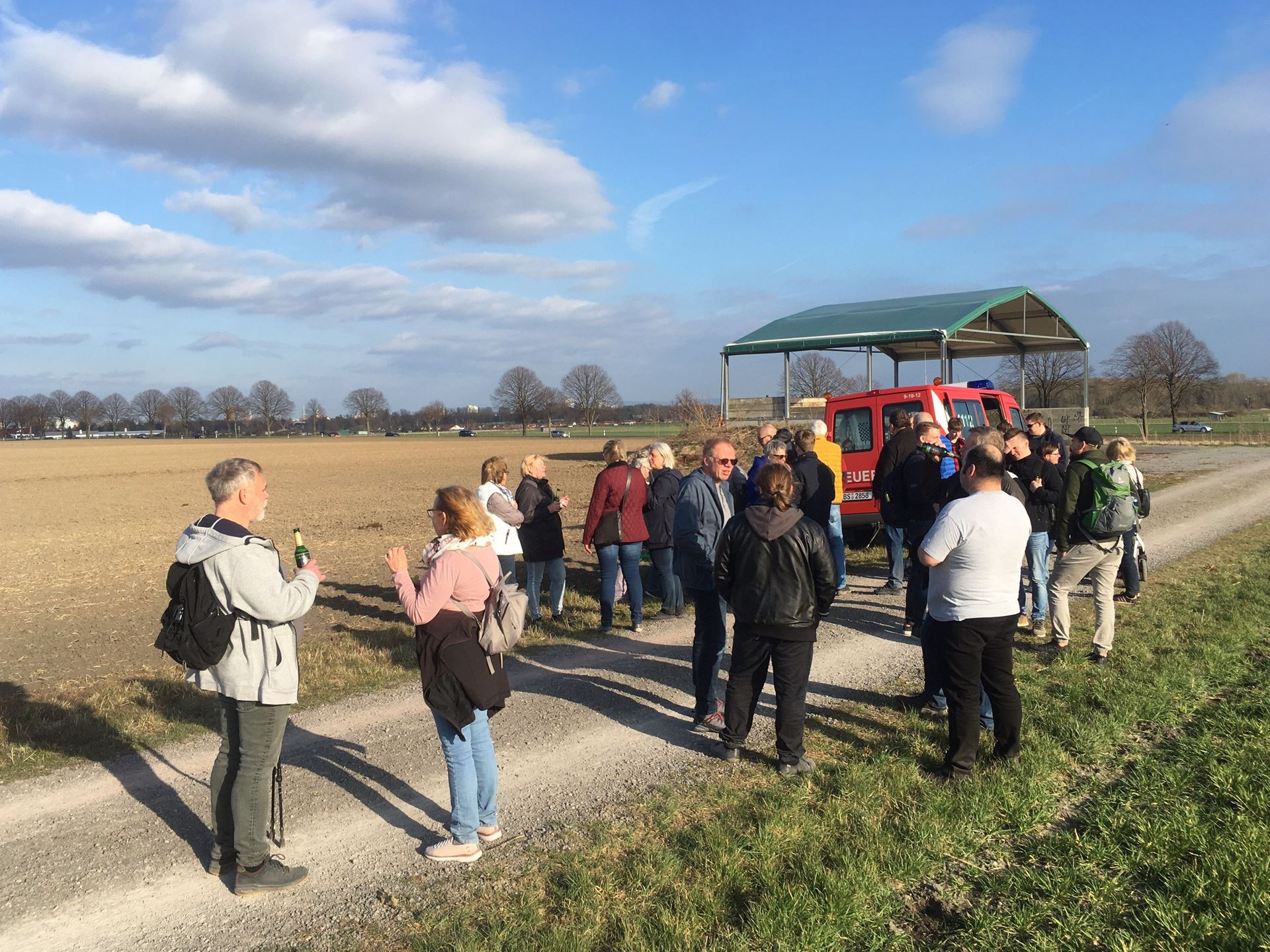 Am Samstagnachmittag trafen sich 37 Wanderer am Feuerwehrhaus in Ölper, um gemeinsam nach einer kurzen Begrüßung die Wanderung zu starten. Der Streckenverlauf führte die Wanderer von Ölper durch die Felder ins Kanzlerfeld. Dort angekommen ging es über die Bundesallee weiter in Richtung Lamme Tiergarten und Lamme. Zwischen Lamme und dem Westpark wurde sich mit den kühlen Getränken und Schmalzbroten gestärkt. Nach gut 45 Minuten Pause ging es auf die Zielgrade in Richtung Restaurant an der Hildesheimer Straße.