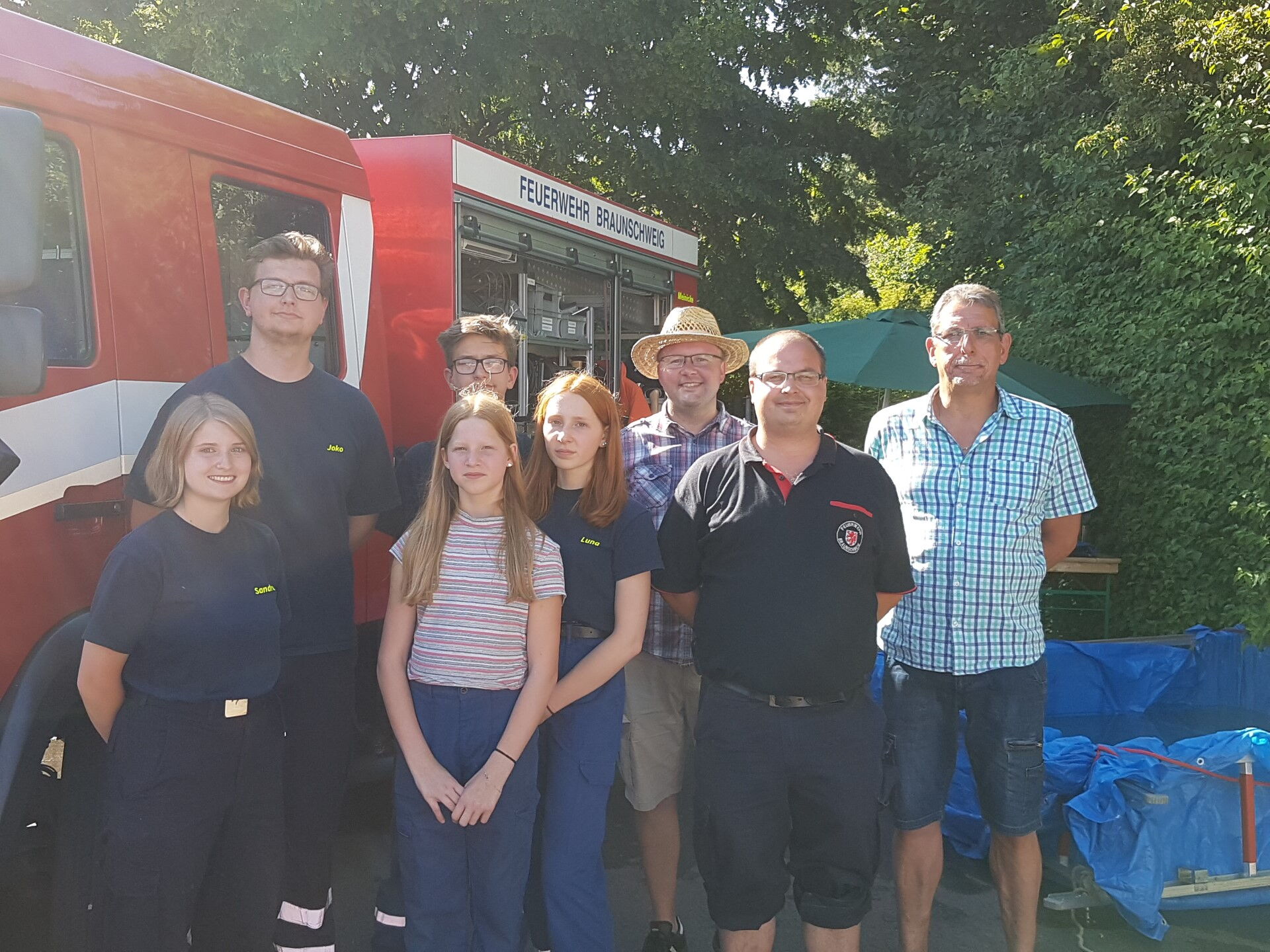 Am Samstag, den 29.06.2019 feierte der Kleingärtnerverein Am Horstbleeke e.V. sein 80- jähriges Bestehen. Wir nahmen zusammen mit einigen Kameraden der Einsatzabteilung an der Veranstaltung mit einem kleinen Pool und einer Spritzaktion teil. Da für diesen Tag bereits unser TSF-W während des Ölperseefestes genutzt wurde, erhielten wir die Möglichkeit auf das Fahrzeug der Feuerwehr Lehndorf zurückzugreifen.