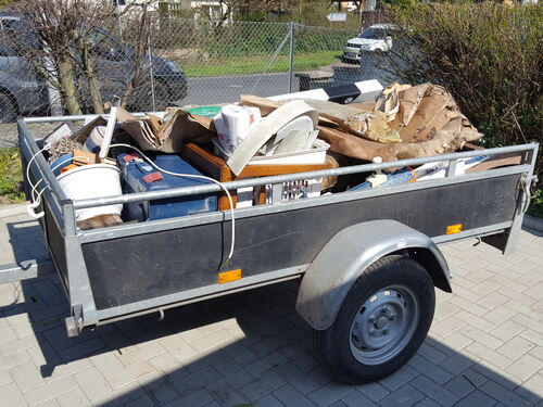 Nach ca. 2,5 Std. Müllsammeln waren diverse Säcke und größerer Unrat zusammengekommen sowie der Container gut gefüllt, so dass nach kurzem Aufklaren der Fahrzeuge und Gerätschaften die Fahrt mit den öffentlichen Verkehrsmitteln zu der Abschlussveranstaltung der Aktion Stadtputz auf dem Platz der Deutschen Einheit am Rathaus angetreten werden konnte. Bei kühlen Getränken, Bratwurst und Hot-Dogs wurde der diesjährige Stadtputz entspannt beendet.